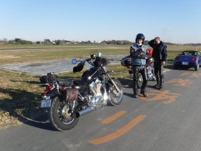 非参加者に捕捉説明、奥に見えるは本田航空滑走路。